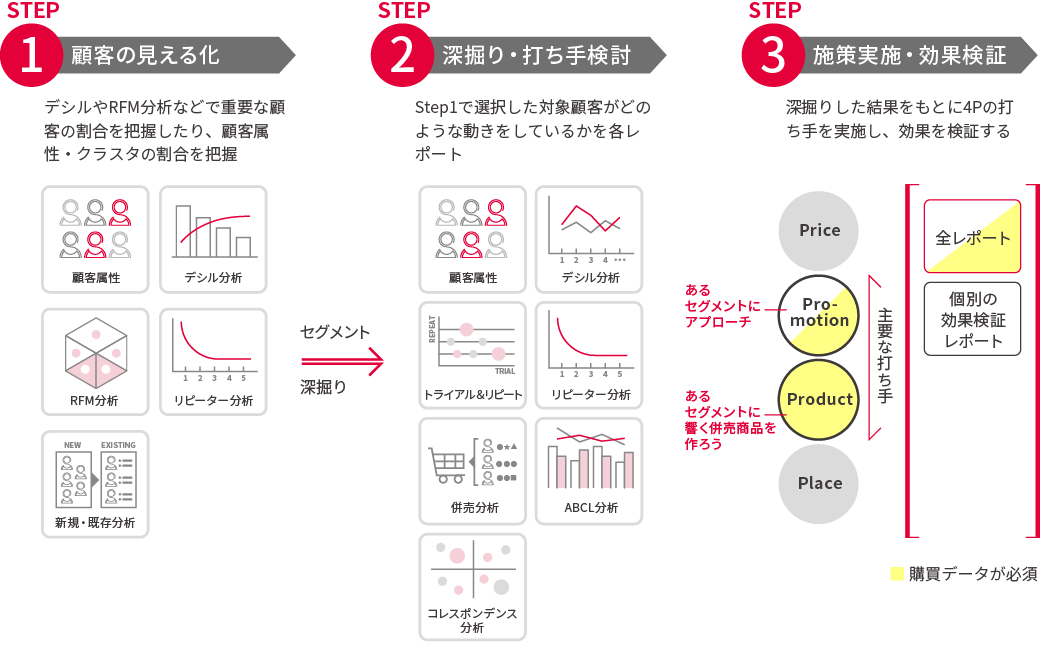 貴社の抱える課題にあわせて、1億IDを超えるPonta会員の属性・行動データを対象に分析を実施。