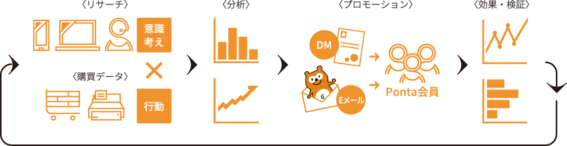 PontaメディアやPonta提携社など、デジタル・リアルを問わないプロモーションチャネルを提供。アナリティクスで得た示唆をもとに、的確なターゲティングから広告配信まで、次の一手をご支援。