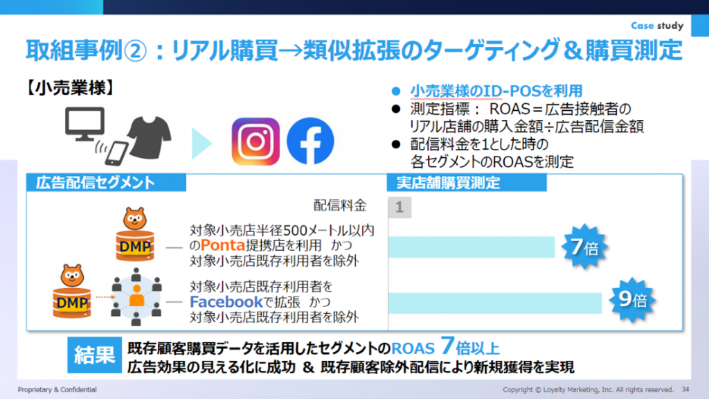 リアル購買データから類似拡張を行ってターゲティングと購買測定をした、小売業者との取り組みの事例です。