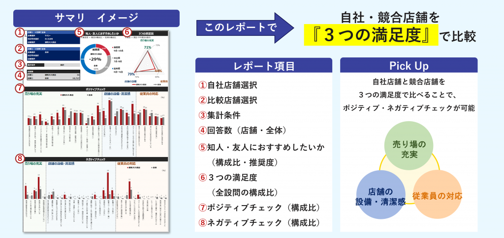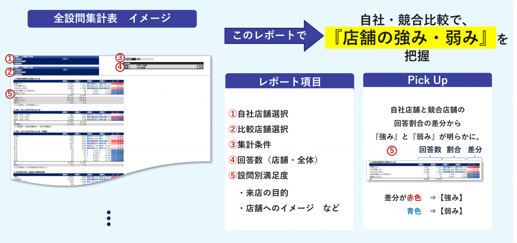 【個店比較レポート ②全設問集計表】で競合他社との詳細比較