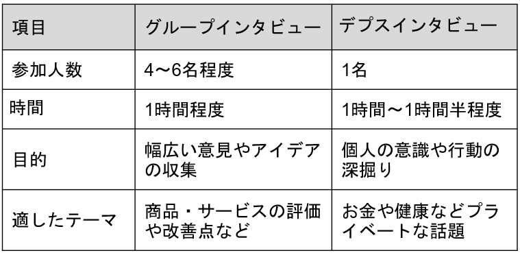 一方、グループインタビューは、一度に多くの意見を収集したい場合や、参加者同士の会話から多様なアイデアを得たい場合に有効です。