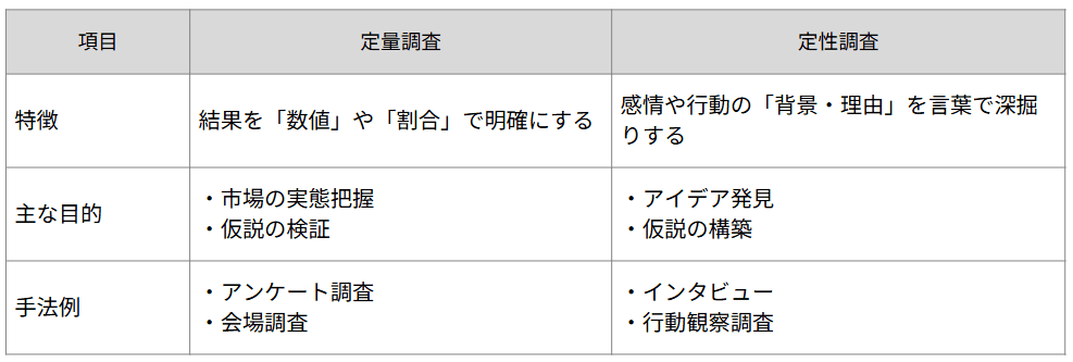 市場の全体像や傾向を客観的なデータとして収集したい場合は、定量調査が適しています。一方で、顧客の深層心理や潜在ニーズを掘り下げたい場合には、定性調査が有効です。