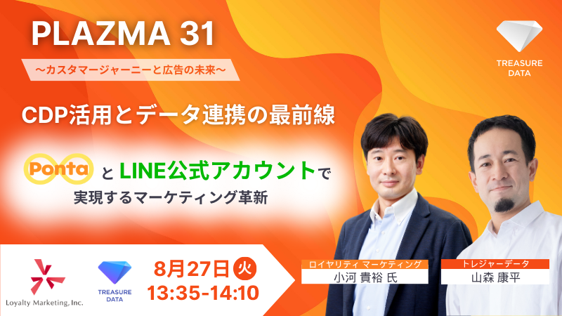 このたび、株式会社 ロイヤリティ マーケティング ビジネスソリューショングループ データイノベーション本部 本部長 小河 貴裕が、「PLAZMA 31 ONLINE」に登壇いたします。