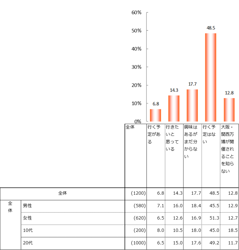 大阪・関西万博へ「行く予定はない」が全体の48.5%を占める一方、38.8%が興味を持っている