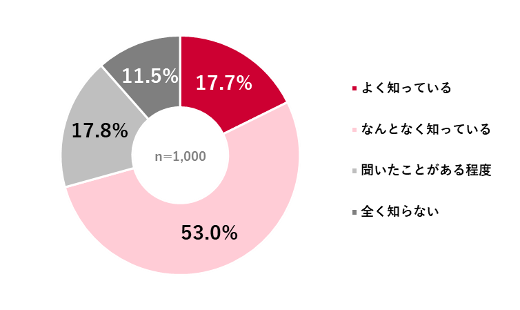 トランプ関税が自分の生活に影響を与えると思うか伺ったところ、「大きな影響がある」(26.7%)、「やや影響がある」(42.8%)となり、合わせると69.5%だった。また、トランプ関税の認知率は、「よく知っている」(17.7%)と「なんとなく知っている」(53.0%)を合わせ、約7割だった。