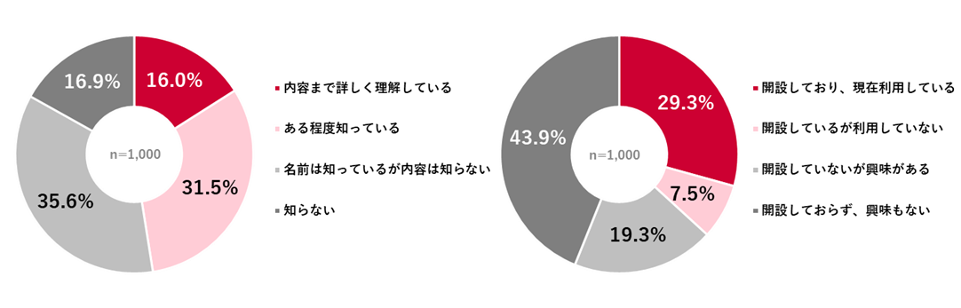 新NISAについて、「内容まで詳しく理解している」「ある程度知っている」を合わせた認知率は47.5%だった。また、新NISA口座を「開設しており、現在利用している」が29.3%、「開設しているが利用していない」が7.5%、「開設していないが興味がある」が19.3%となった。それぞれを合計した「興味がある層」は56.1%となり、「興味がない層」(43.9%)を上回った。
