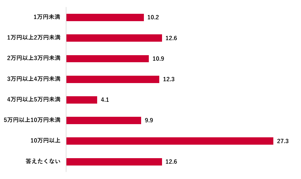 新NISAを現在利用している方を対象に、新NISAで運用している商品を伺ったところ、「投資信託」が78.2%で最も高かった。投資月額は「10万円以上」が約3割でトップだった。