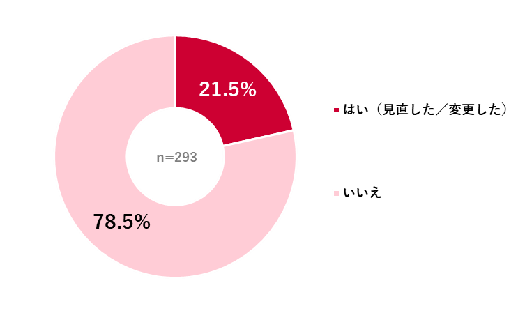 新NISAを現在利用している方を対象に、トランプ関税の報道を受け、新NISAの投資内容の見直しや変更をしたか伺ったところ、「いいえ」が78.5%となり「静観する層」が約8割を占めた。一方、「はい(見直した/変更した)」は21.5%にとどまった。