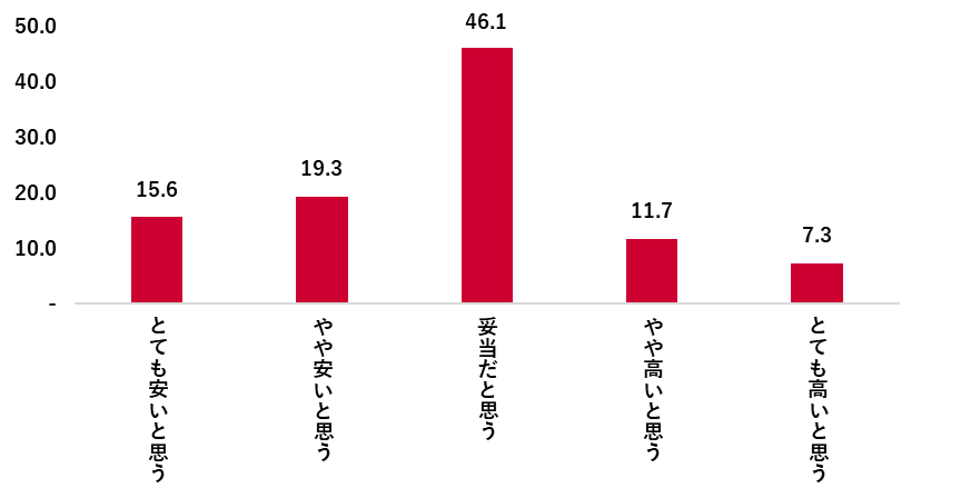 また、5kgで2,000円前後という価格設定については、「妥当だと思う」が46.1%と最も多く、約半数が価格を肯定的に受け止めていることが分かった。