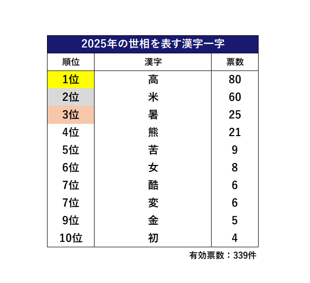 • 2025年の世相を表す漢字1位は「高」高市首相の就任、物価高株高気温の高さから選ばれた